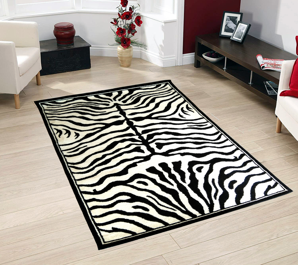 Black and white patterned rug for boho décor, ideal for cozy and modern spaces.