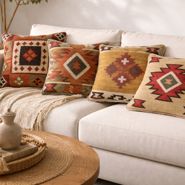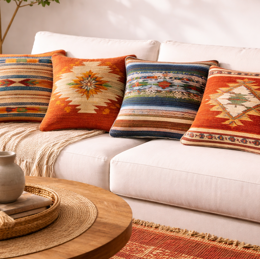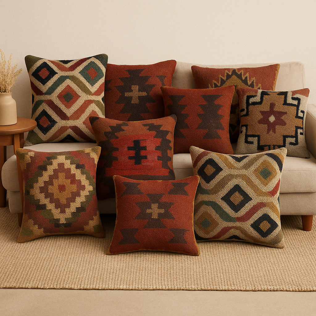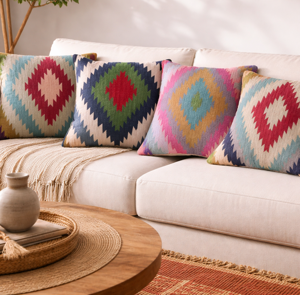 Ethnic patterned cushions, ideal for a rich and cozy look.
