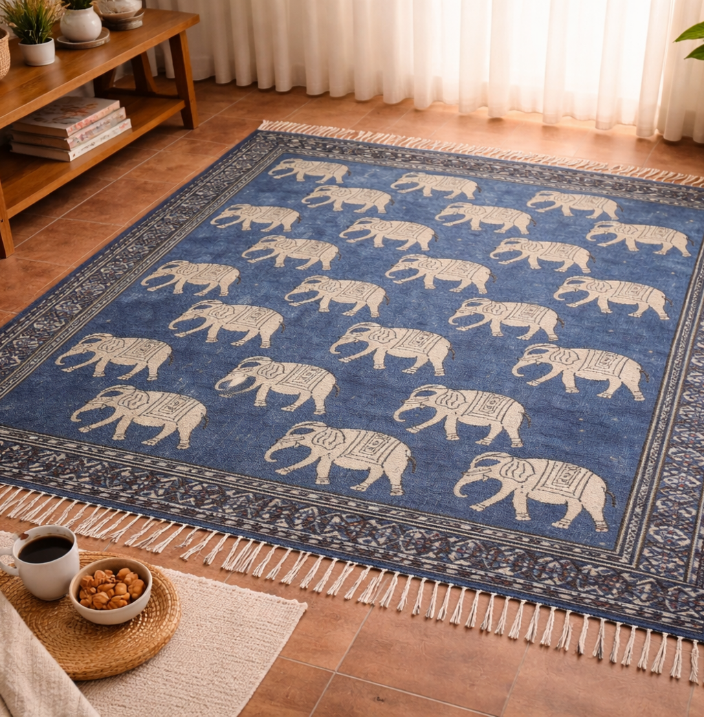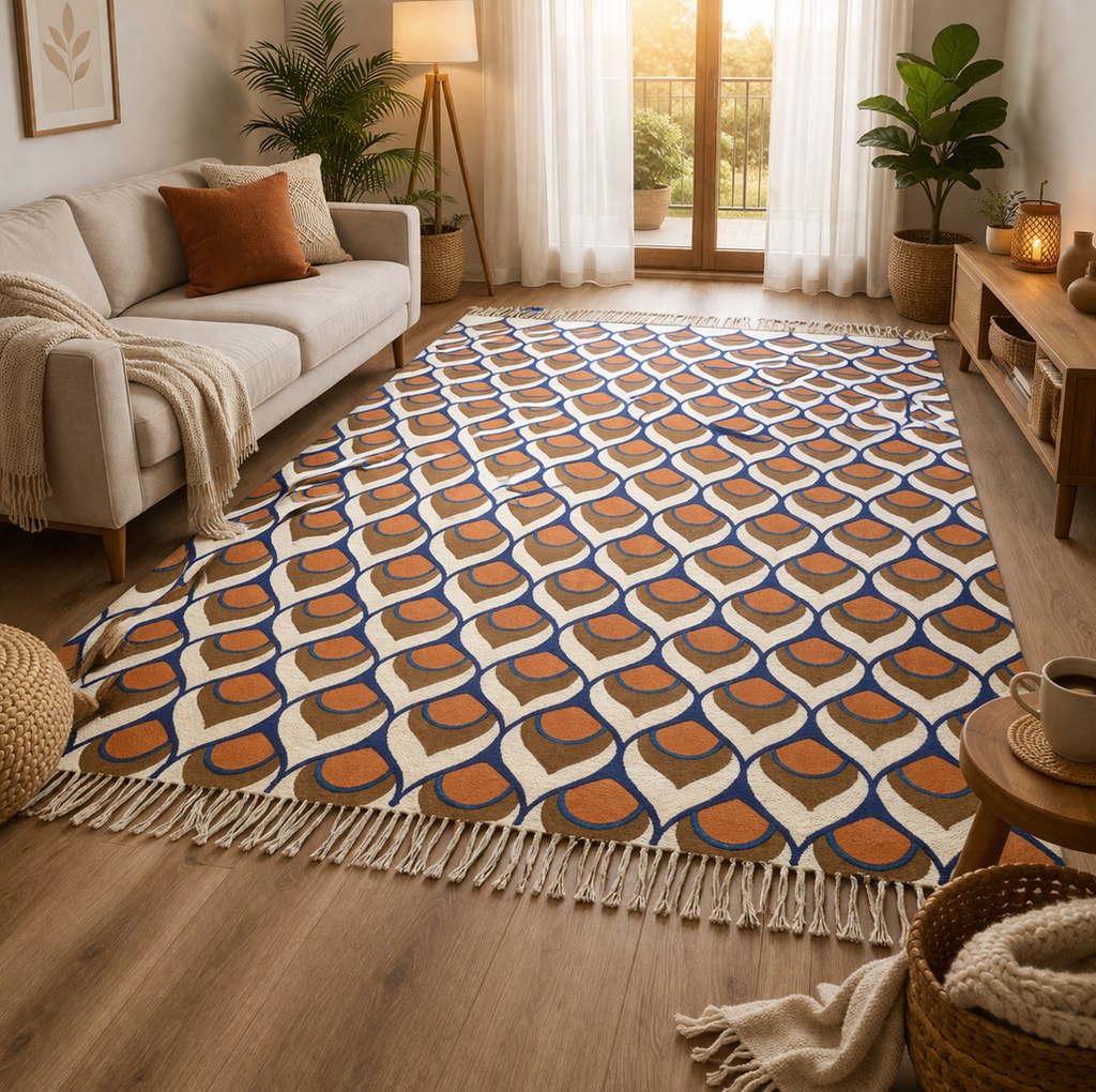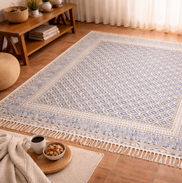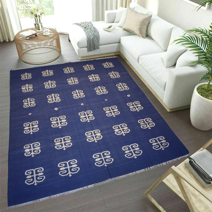Blue patterned area rug for living room and bedroom, ideal for modern décor, cozy interiors, and elegant home styling.