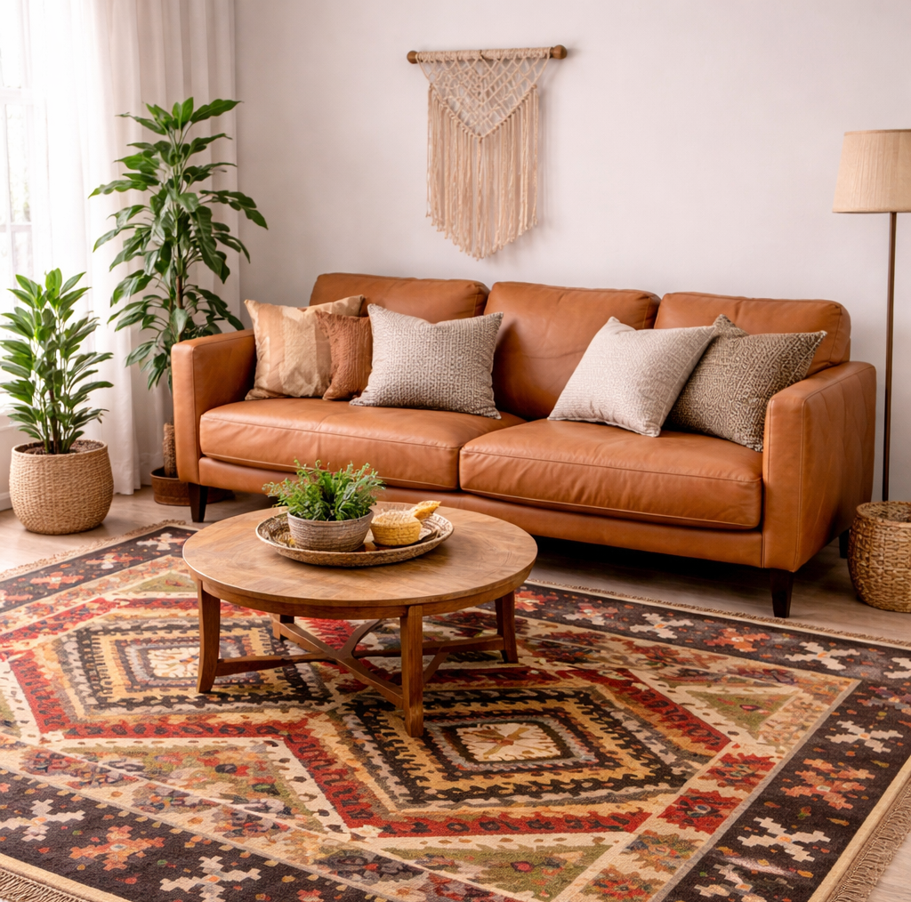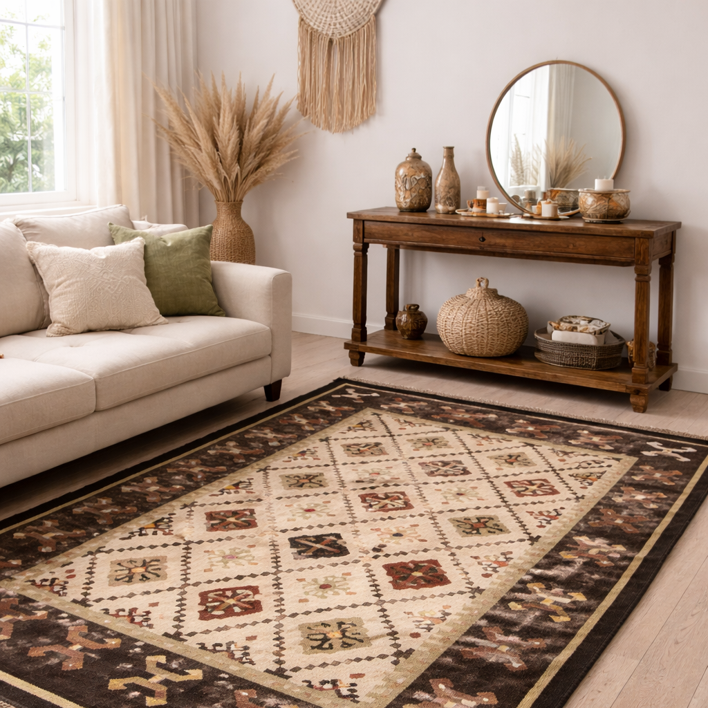 Warm-toned rug, ideal for cozy and inviting interiors.
