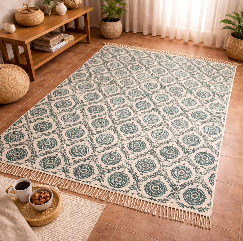 Classic patterned rug, perfect for balanced and elegant spaces.