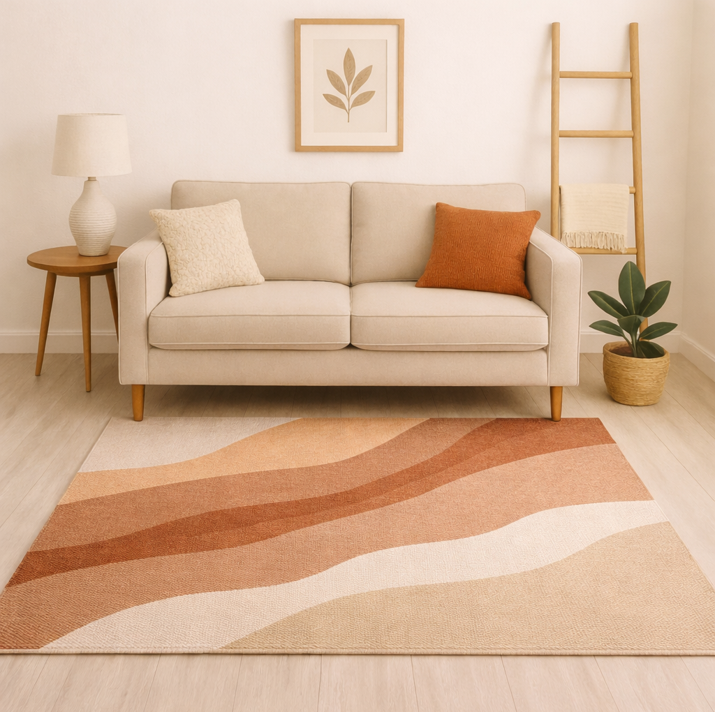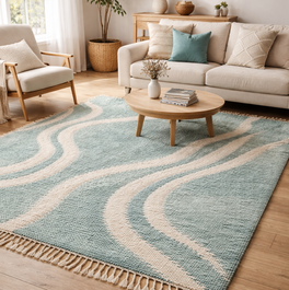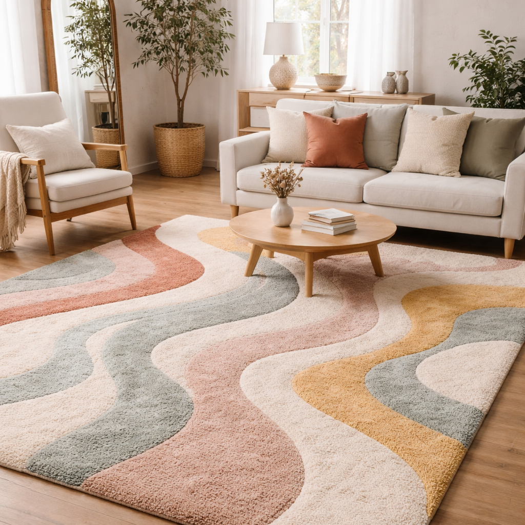 Soft wave-pattern rug, great for calm and contemporary décor.