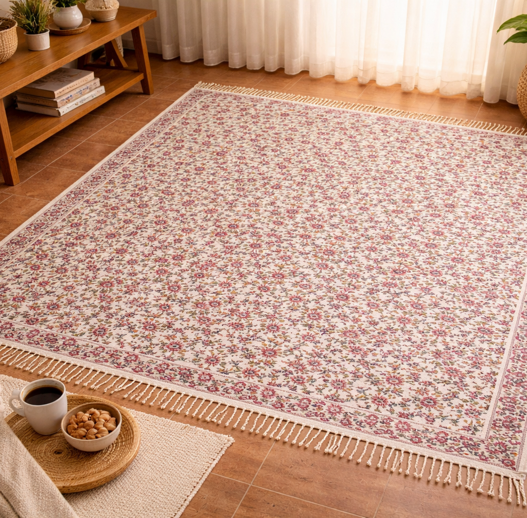 Delicate floral rug with soft tones, ideal for cozy and elegant interiors.