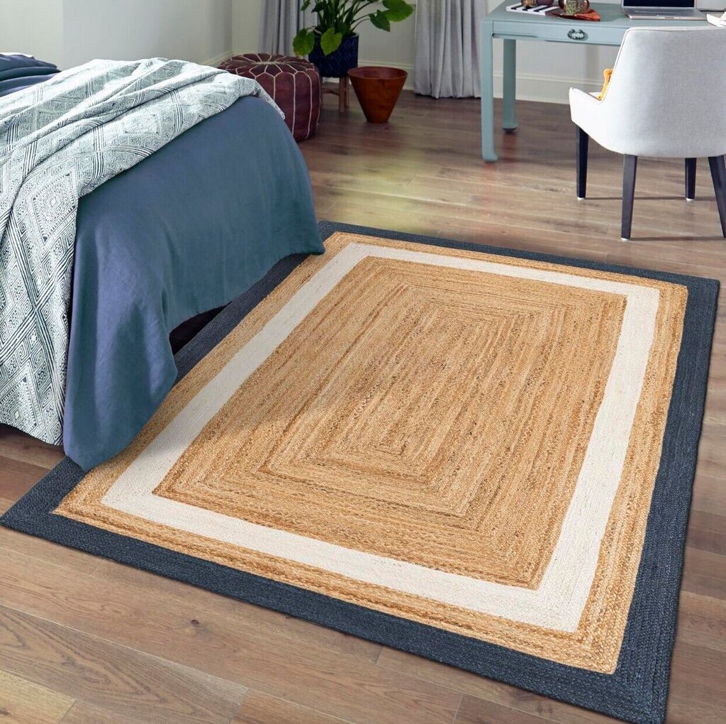 Layered border jute rug for living room and bedroom, natural fiber rug perfect for rustic, boho, and modern home décor.