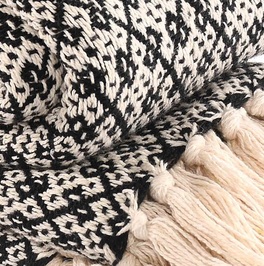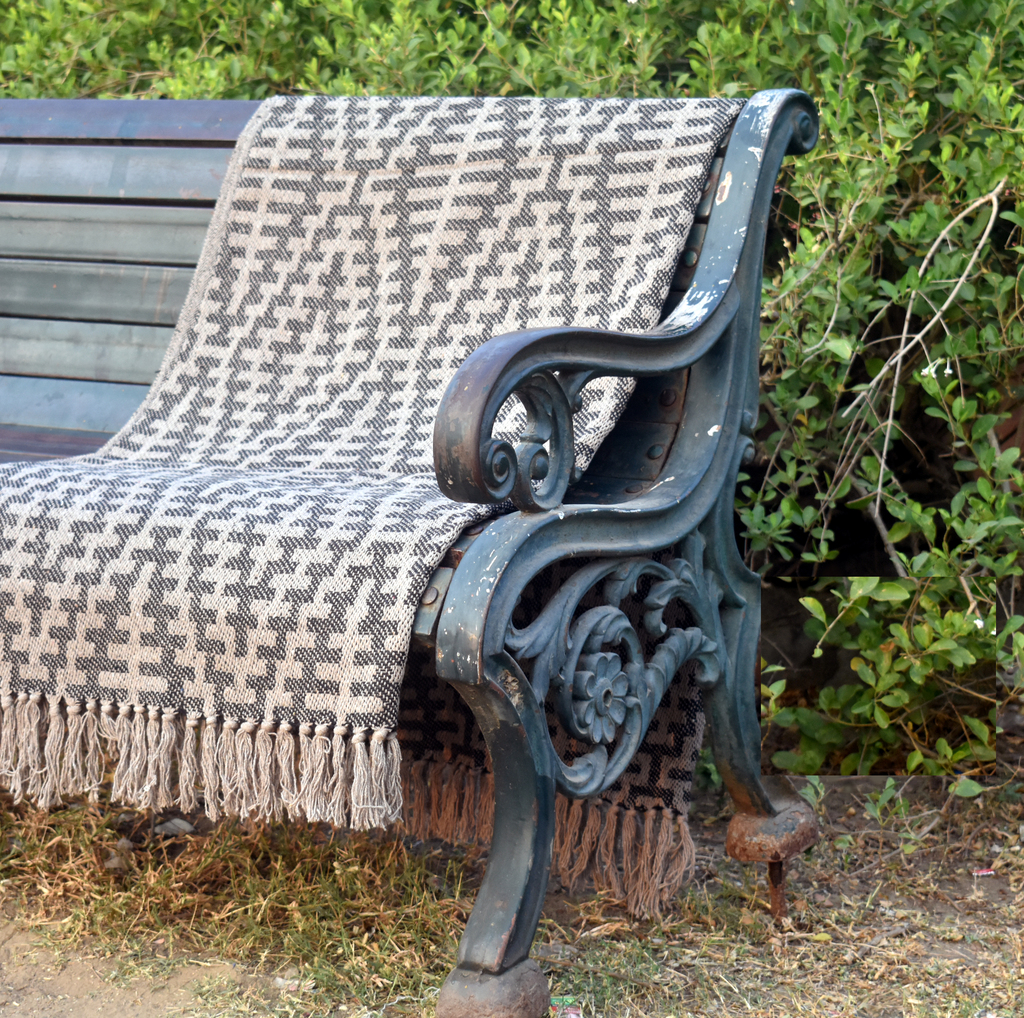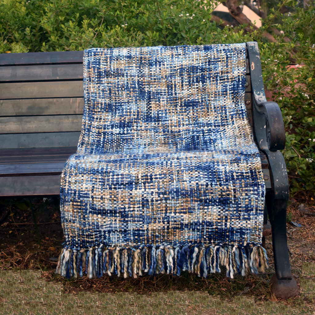 Handwoven throw with tassels, great for rustic outdoor and indoor décor.