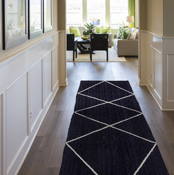 Geometric jute runner rug for hallway and entryway, ideal for contemporary homes, durable, stylish, and eco-friendly décor.