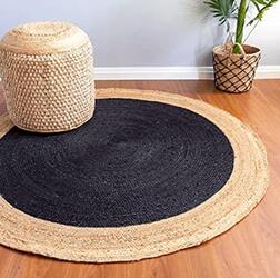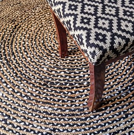 A bold dual-tone jute rug in black and natural shades, crafted to create contrast and statement in any room.