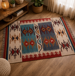Traditional motif rug with rich design, perfect for warm and cultural décor.