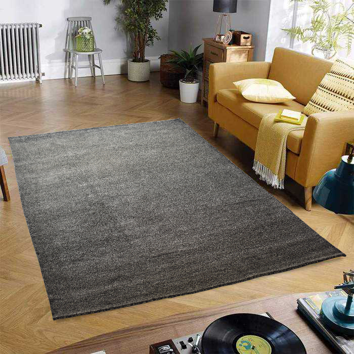 Neutral black rug with a minimalist design, great for contemporary rooms.